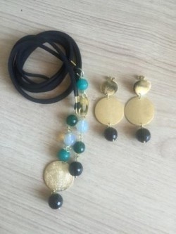 Conjunto Collar y Aros Bañados en Oro con Piedra Natural E5135 cantidad